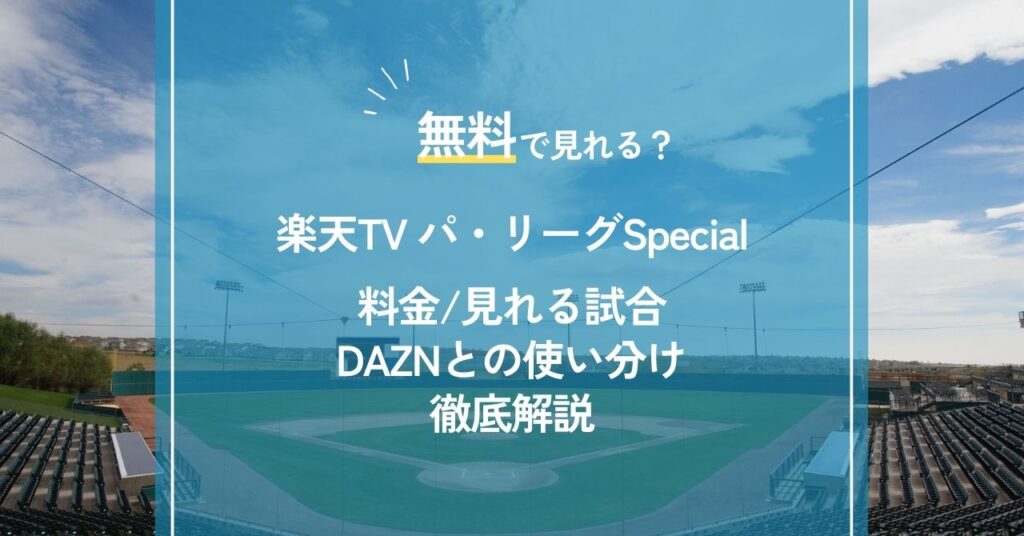 楽天TV パ・リーグSpecialは無料で見れる?料金・見れる試合・DAZNとの使い分けを徹底解説【2026年】