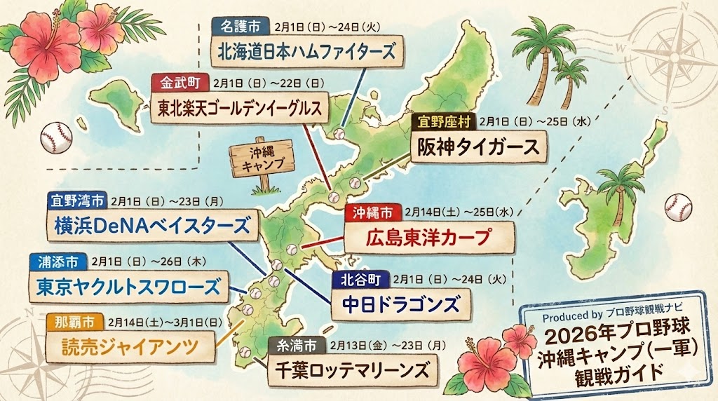 【2026年】沖縄プロ野球キャンプ日程・球場一覧(球団別)|休養日・練習試合・OP戦も